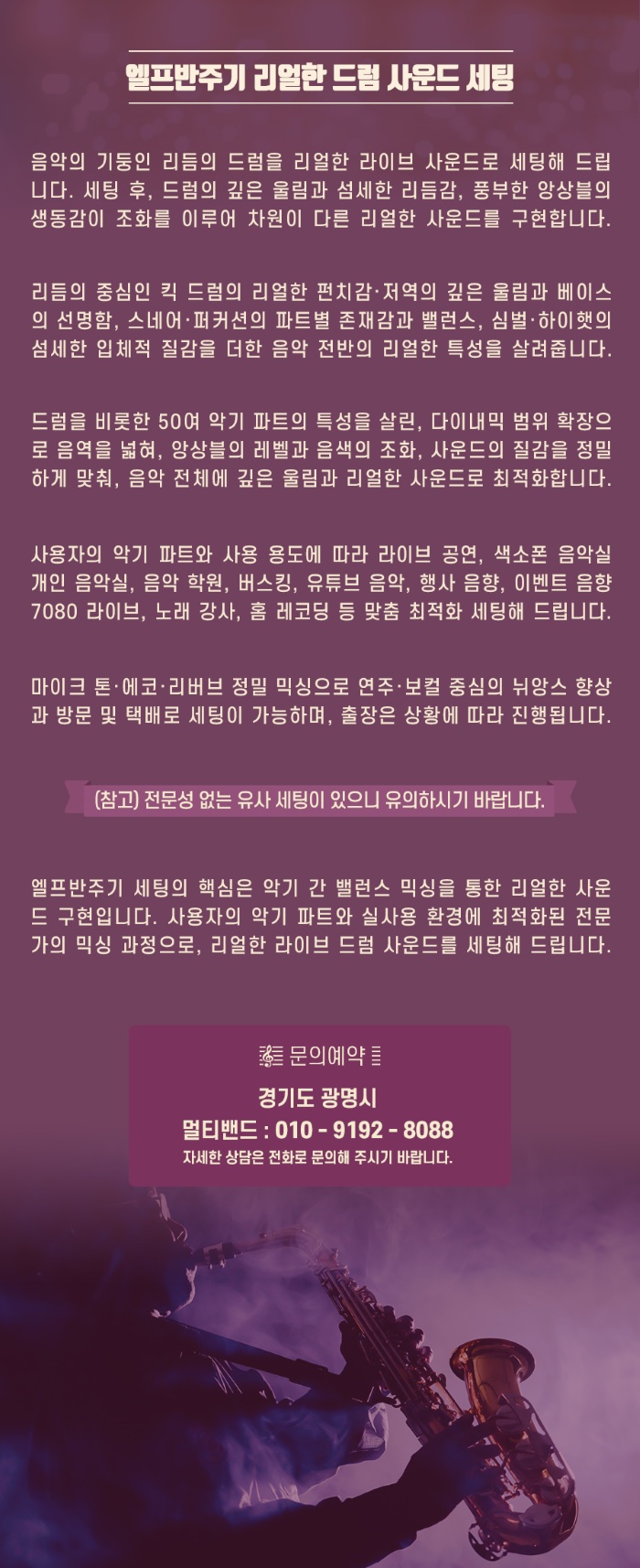 엘프919, 910, 909, 900, 808 리얼한 드럼 사운드 세팅해 드립니다. 엘프반주기 세팅의 핵심은 악기 간 밸런스 믹싱..
