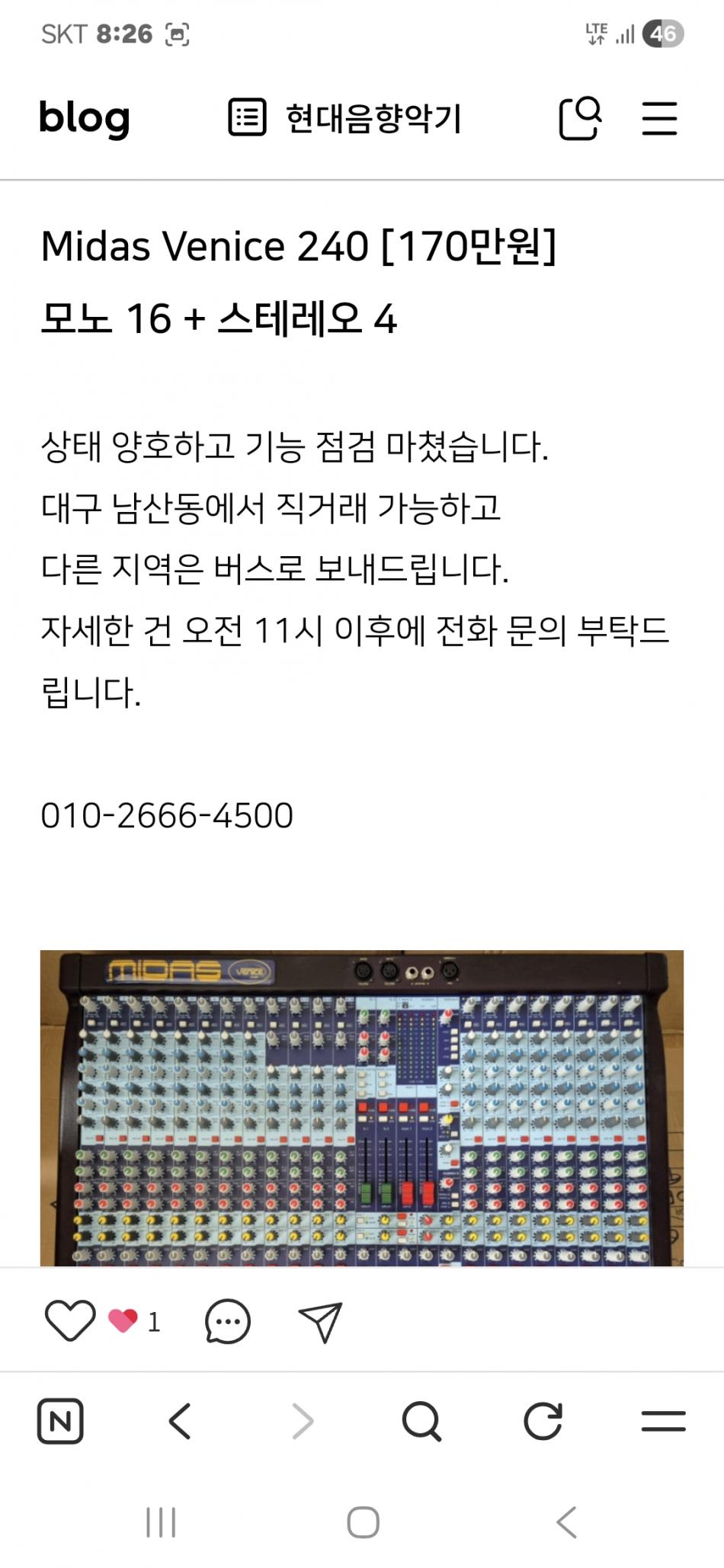 사진은보듯이 사용감있읍니다수리내역없고 소리좋습니다..직거래는서울이고 가격은140만입니다010-4551-6080