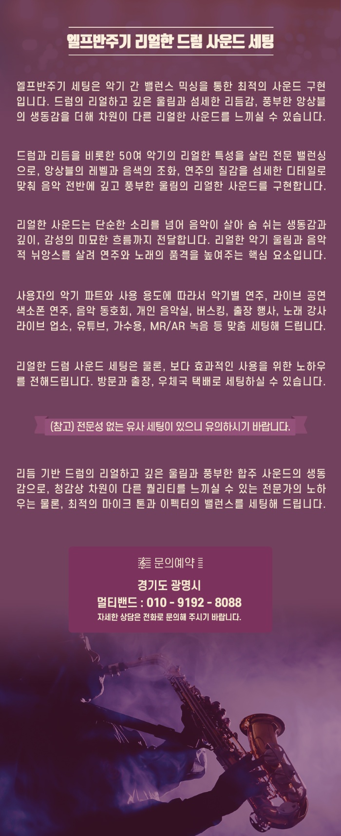 엘프919, 910, 909, 900, 808 리얼한 드럼 사운드 세팅해 드립니다. 엘프반주기 세팅은 악기 간 밸런스..