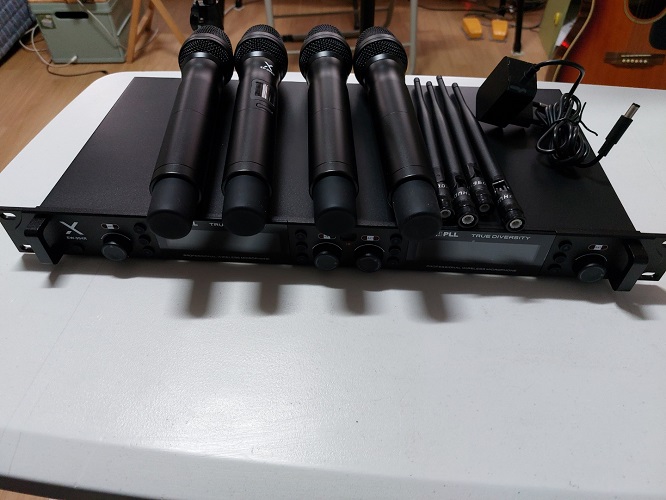 고급 무선마이크 마이픽스 4채널 입니다(핸드 4개)